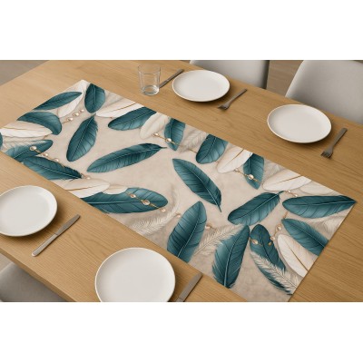 Runner Tavolo 140X 50CM Tropical Piume e Perle - Passatoia Tavola Stampa Digitale Poliestere Antimacchia Vari Colori e Misure