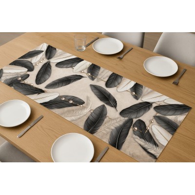 Runner Tavolo 140X 50CM Tropical Piume e Perle - Passatoia Tavola Stampa Digitale Poliestere Antimacchia Vari Colori e Misure