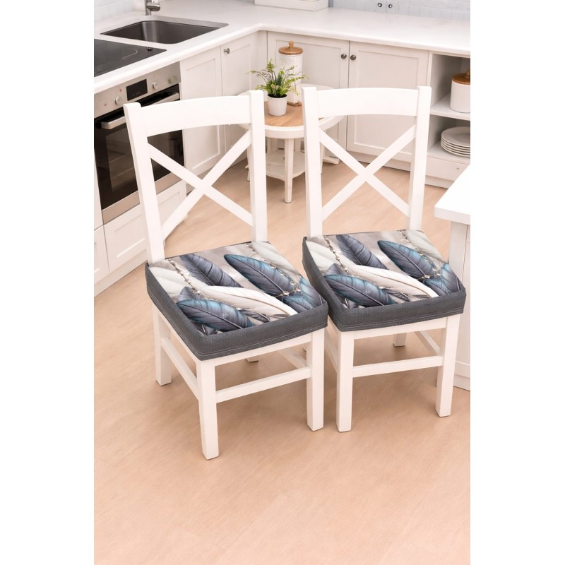 Coppia Cuscini Sedia con Fascia Elastica 40x40 cm Stampa Piume con Perle – 100% Poliestere Linea Tropical