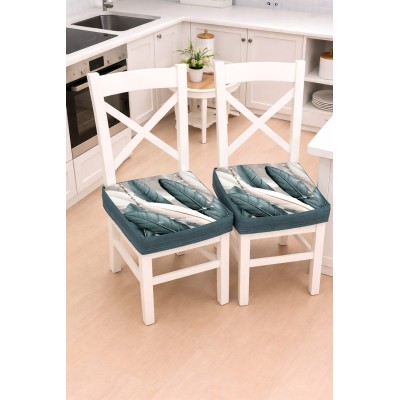 Coppia Cuscini Sedia con Fascia Elastica 40x40 cm Stampa Piume con Perle – 100% Poliestere Linea Tropical