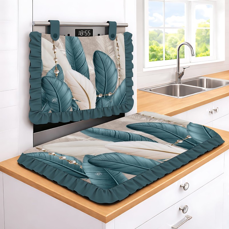 Set Copriforno e Coprifornello Linea Tropical Piume e Perle – 5 Colorazioni 100% Poliestere