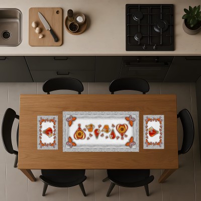 100% poliestere morbido, resistente e facile da mantenere: il materiale garantisce durata nel tempo, semplicità di pulizia e colori sempre vivaci, rendendo il centrotavola pratico da usare ogni giorno con grande eleganza.
