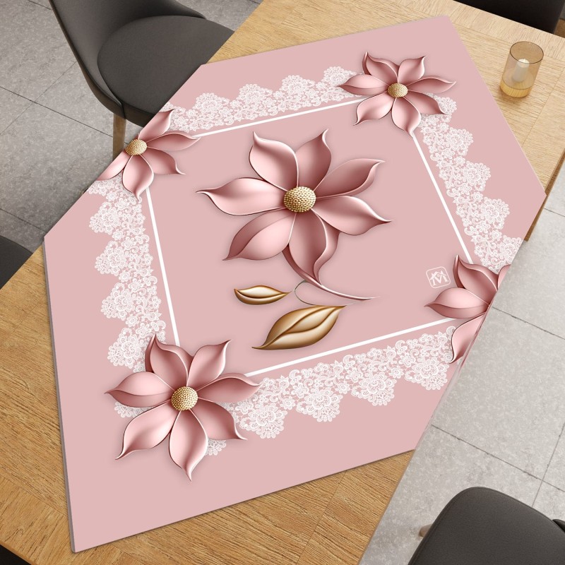 🌸 Stampa floreale 3D esclusiva ispirata alle ceramiche artistiche: fiori tridimensionali dai petali morbidi e decorazioni in pizzo bianco donano alla tavola un'eleganza senza tempo e un tocco di raffinatezza davvero unico.