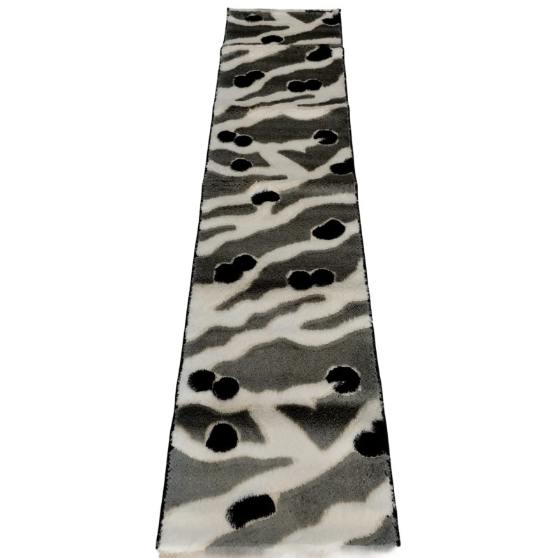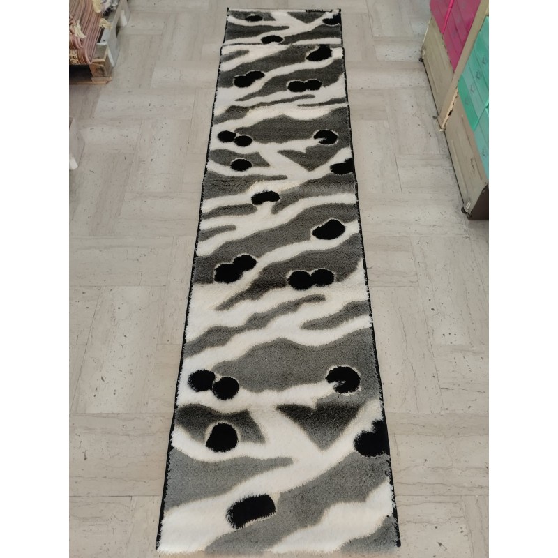 Elegante e moderno, questo tappeto passatoia 70x290 cm è perfetto per ingresso e corridoio. Il design zebra nero, grigio e bianco con pelo alto offre stile e comfort. Antiscivolo e lavabile, è ideale per proteggere i pavimenti con un tocco di carattere contemporaneo.