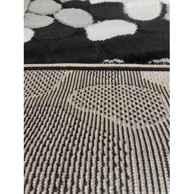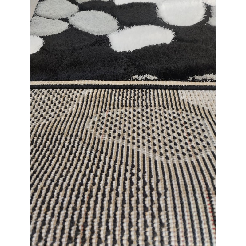 🌀 Tappeto dallo stile moderno con motivo astratto a onde, ciottoli e curve nei toni nero, grigio e bianco per un impatto visivo elegante e contemporaneo.