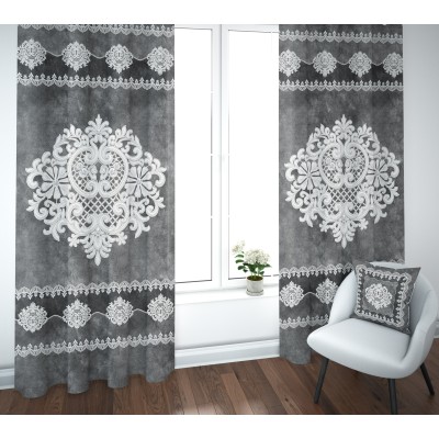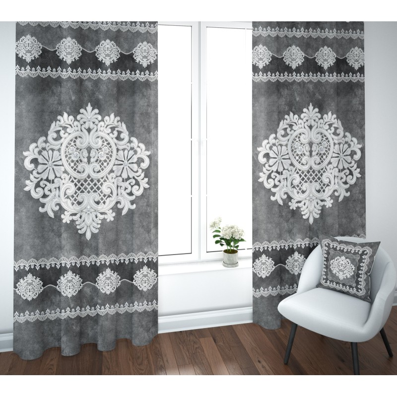 Coppia Tende con Stampa Digitale Effetto Pizzo | Tessuto Fiammetta 100% Poliestere Linea Reprodè