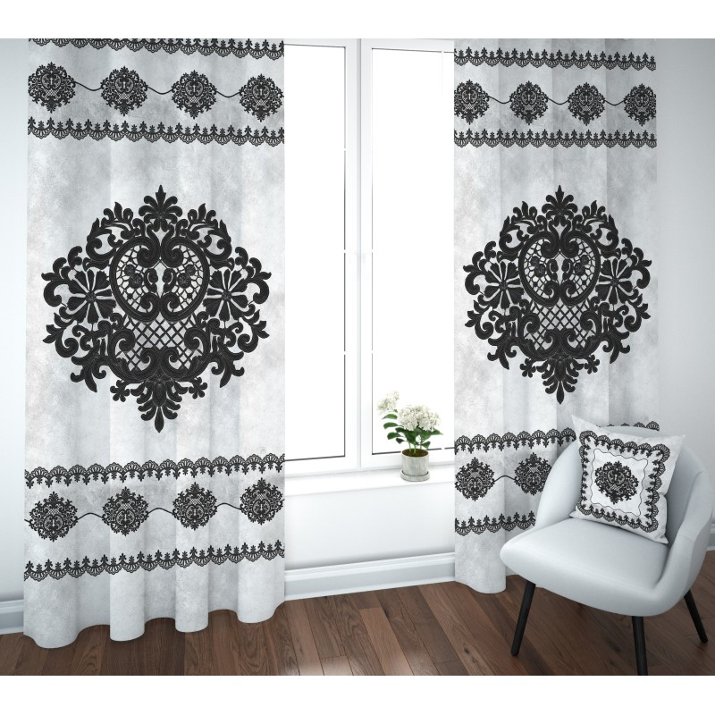 Coppia Tende con Stampa Digitale Effetto Pizzo | Tessuto Fiammetta 100% Poliestere Linea Reprodè