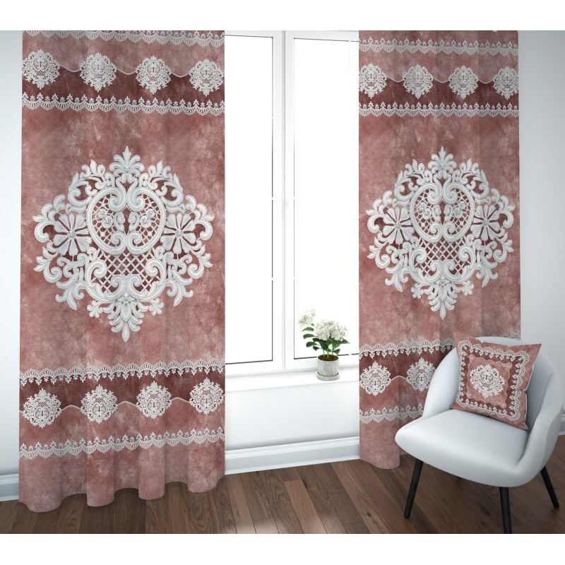 Coppia Tende con Stampa Digitale Effetto Pizzo | Tessuto Fiammetta 100% Poliestere Linea Reprodè
