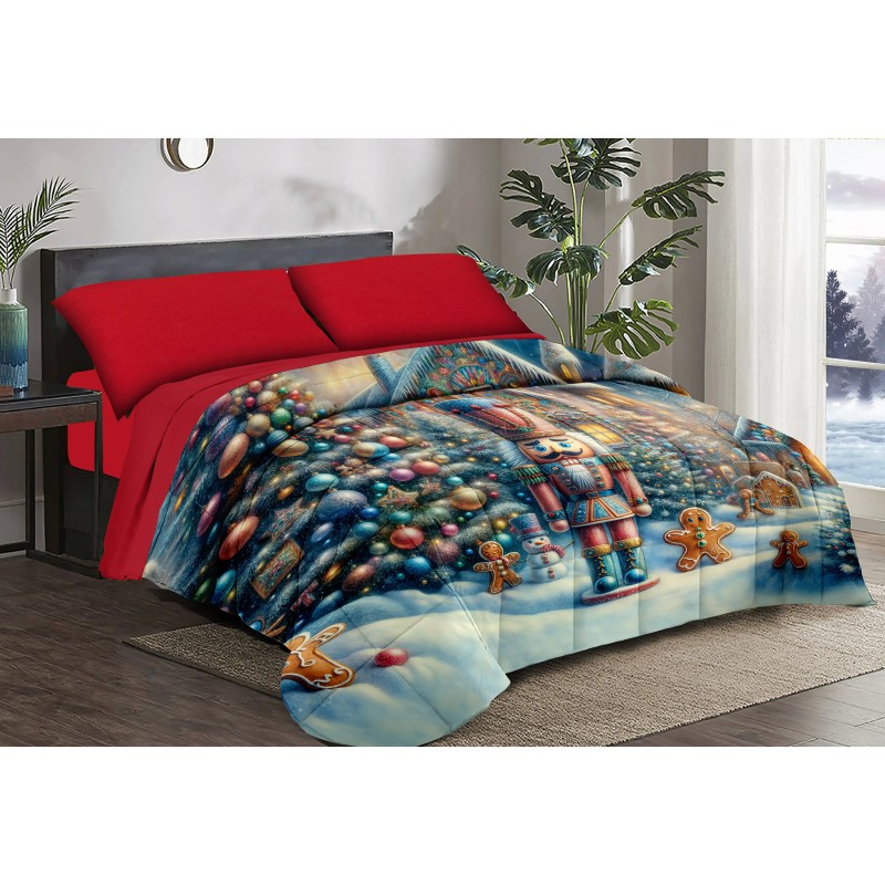 Celebra le festività con la nostra trapunta natalizia, che porta l'atmosfera natalizia direttamente nella tua camera da letto. Ogni trapunta è realizzata con tessuti di alta qualità e arricchita da una stampa digitale accurata che esalta i dettagli di ogni fantasia. Non solo un complemento d’arredo elegante, ma anche una soluzione ideale per garantirti il massimo del comfort durante le fredde notti invernali. Aggiungi un tocco festivo alla tua casa o regala il calore del Natale ai tuoi cari con una trapunta unica e originale.