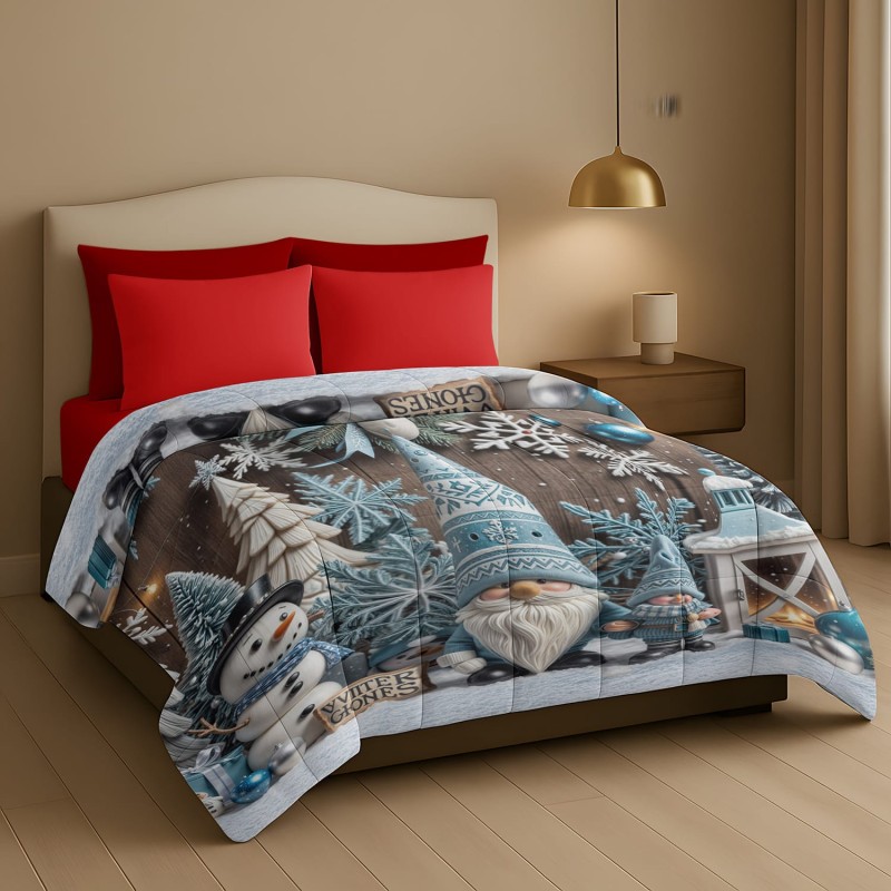 Trapunta Natalizia Matrimoniale – Gnomi blù – Stile e Comfort per le Feste