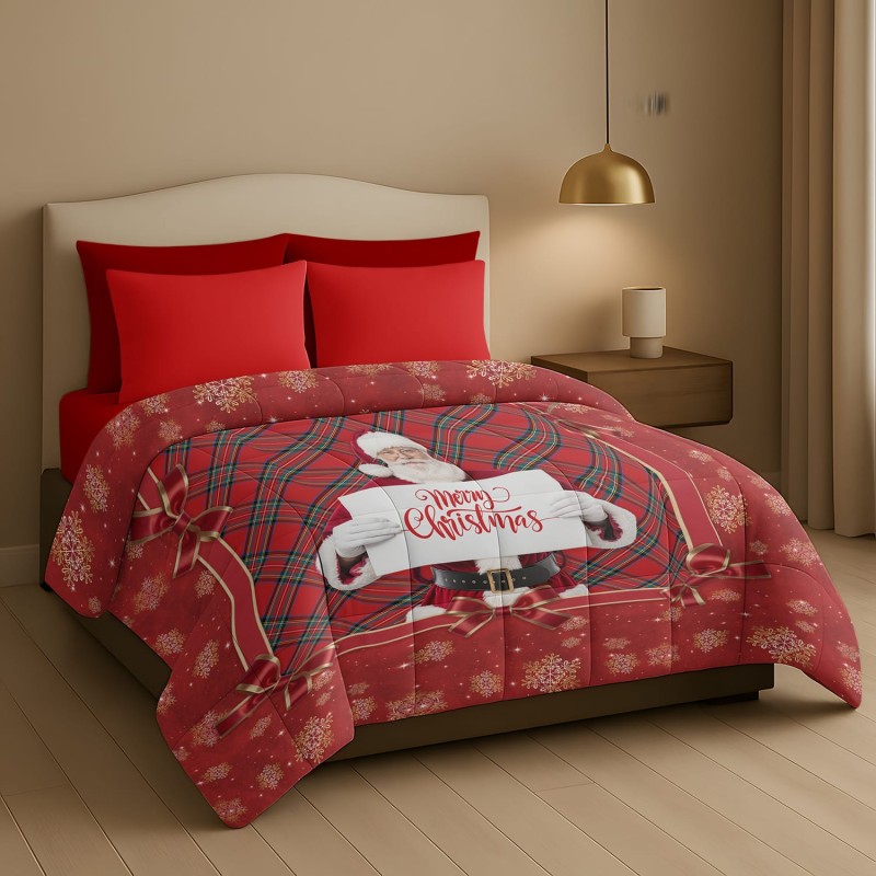 Trapunta Natalizia Matrimoniale –Babbo natale classico– Stile e Comfort per le Feste
