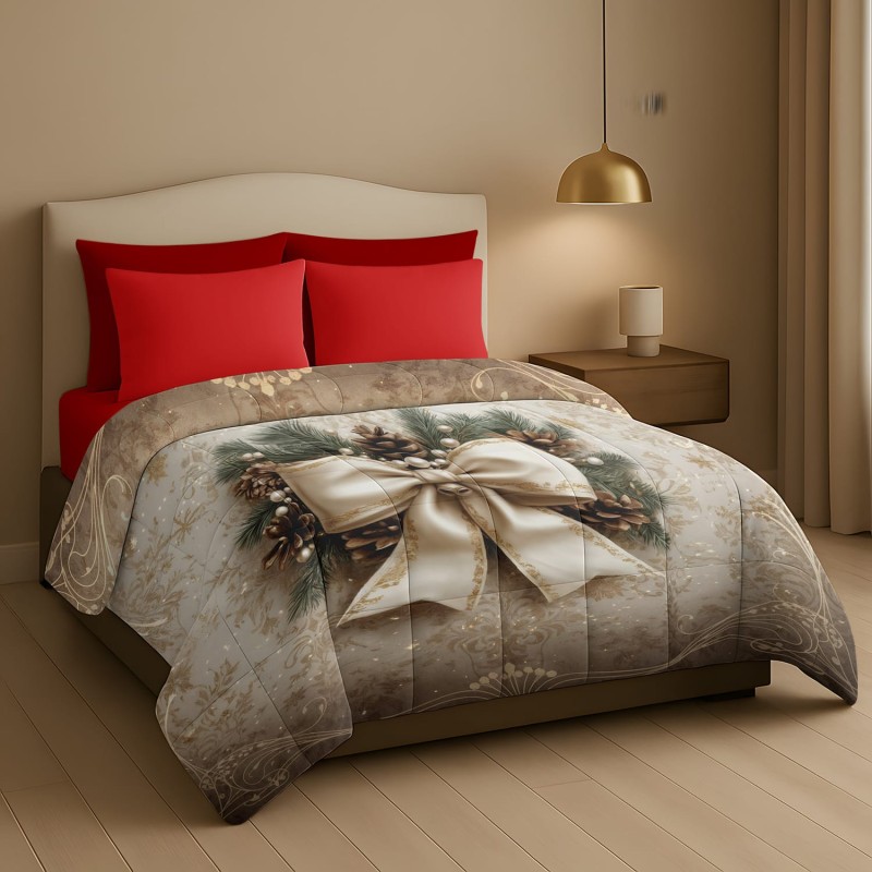 Trapunta Natalizia Matrimoniale –Grande fiocco e pigne– Stile e Comfort per le Feste