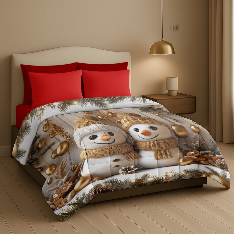 Trapunta Natalizia Matrimoniale –Due pupazzi di neve– Stile e Comfort per le Feste