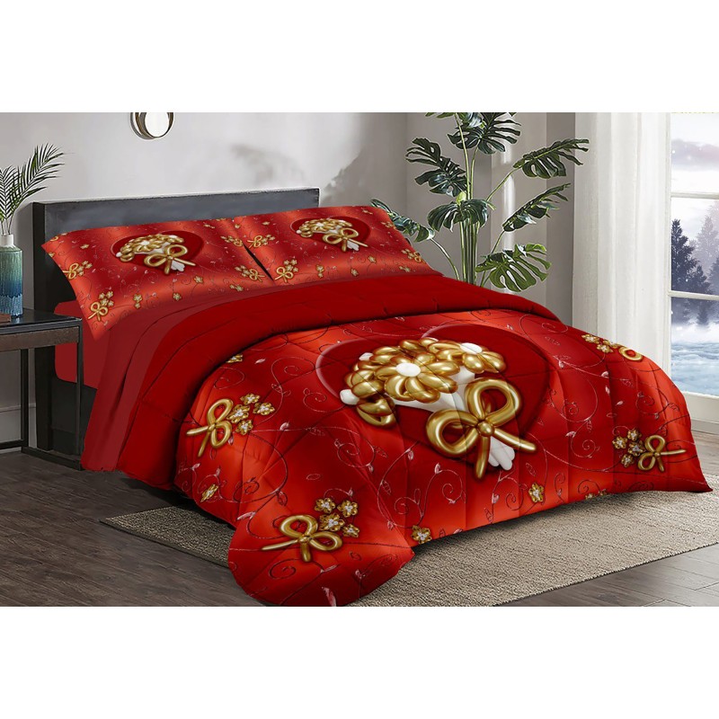 Trapunta Natalizia Matrimoniale – Motivi di fiocchi e fiori dorati– Stile e Comfort per le Feste
