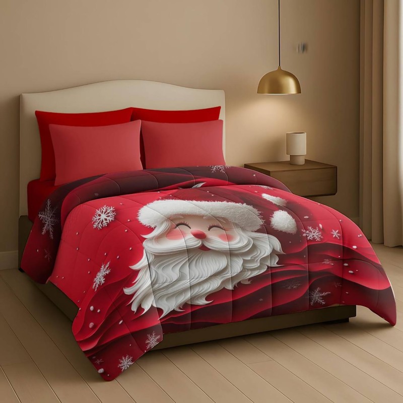 Trapunta Natalizia Matrimoniale –Con un'illustrazione di Babbo Natale – Stile e Comfort per le Feste