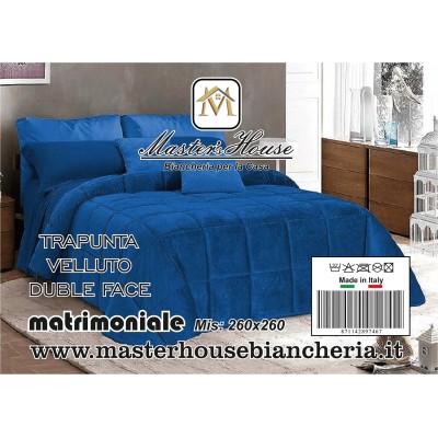 Riscalda le tue notti e arricchisci la tua camera da letto con la nostra esclusiva trapunta matrimoniale in velluto double face. Con dimensioni generose di 260x260 cm, questa trapunta è l'emblema del comfort lussuoso, offrendo due lati in velluto morbido e accogliente in colori diversi per adattarsi facilmente al cambiamento del tuo stile o dell'umore. Perfetta per le stagioni più fredde o semplicemente per aggiungere un tocco di eleganza sofisticata alla tua stanza, la trapunta è disponibile in una gamma di colori selezionati per complementare qualsiasi arredamento. Lasciati avvolgere dalla sua morbidezza impareggiabile e trasforma il tuo letto in un rifugio di pace e comfort.
