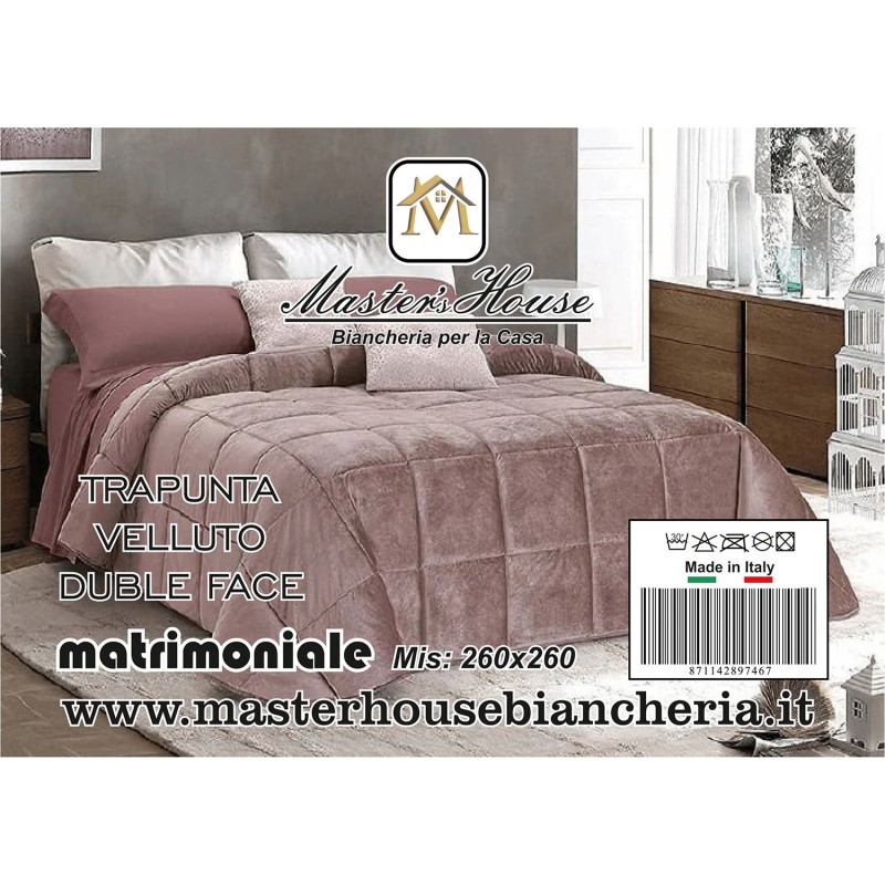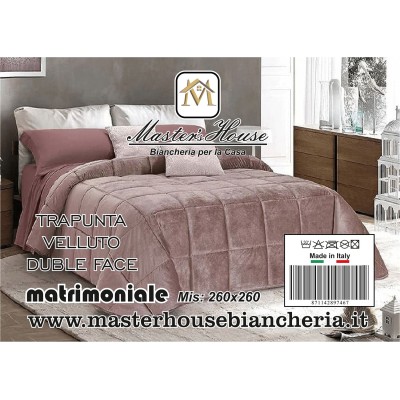 Riscalda le tue notti e arricchisci la tua camera da letto con la nostra esclusiva trapunta matrimoniale in velluto double face. Con dimensioni generose di 260x260 cm, questa trapunta è l'emblema del comfort lussuoso, offrendo due lati in velluto morbido e accogliente in colori diversi per adattarsi facilmente al cambiamento del tuo stile o dell'umore. Perfetta per le stagioni più fredde o semplicemente per aggiungere un tocco di eleganza sofisticata alla tua stanza, la trapunta è disponibile in una gamma di colori selezionati per complementare qualsiasi arredamento. Lasciati avvolgere dalla sua morbidezza impareggiabile e trasforma il tuo letto in un rifugio di pace e comfort.