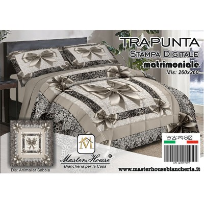 Dimensioni Generose: Con una misura di 260x260 cm, la trapunta offre una copertura ampia e confortevole per il letto matrimoniale.