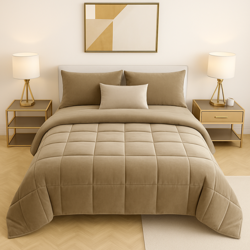🤎 Eleganza Senza Tempo – Trapunta matrimoniale color tortora, tonalità neutra e raffinata che valorizza ogni ambiente.