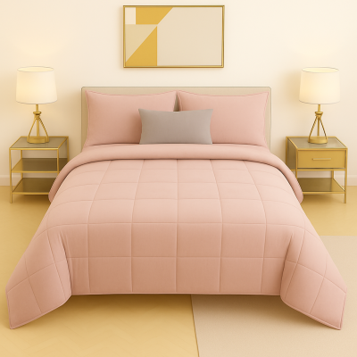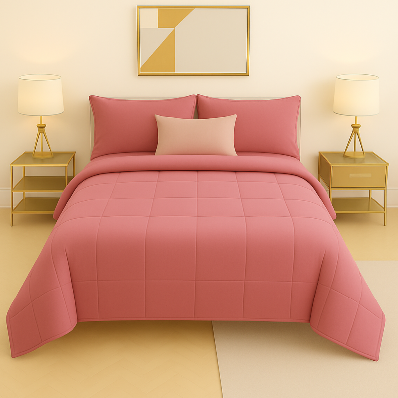 🌸 Colore Delicato e Raffinato – Trapunta matrimoniale rosa cipria per una camera da letto luminosa e romantica.