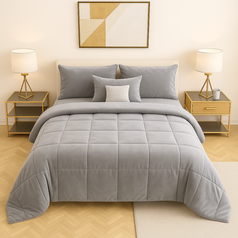 🩶 Colore Elegante e Neutro – Trapunta grigio perla dal design moderno, perfetta per ogni stile di camera da letto.