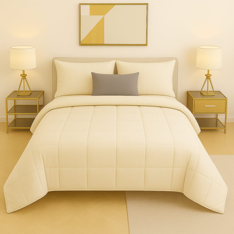 🤍 Colore Luminoso e Raffinato – Trapunta matrimoniale color panna, perfetta per arredare con eleganza ogni tipo di camera.