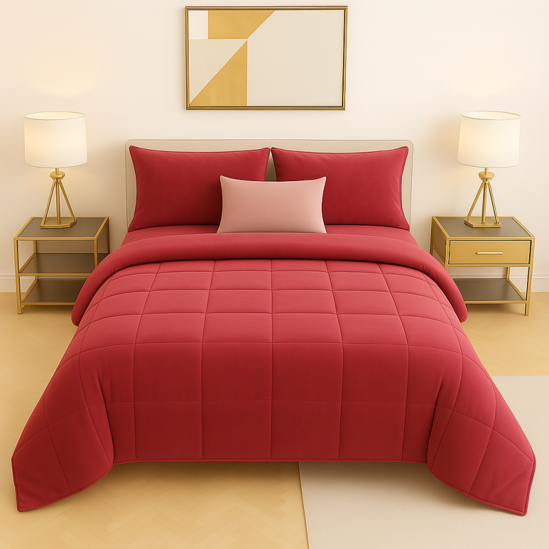❤️ Tonalità Calda e Avvolgente – Trapunta matrimoniale color rosso ideale per dare personalità e calore alla camera da letto.
