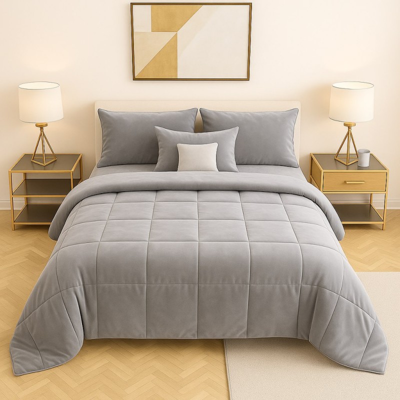 La trapunta matrimoniale grigio perla in microfibra unisce comfort, eleganza e funzionalità in un unico capo.