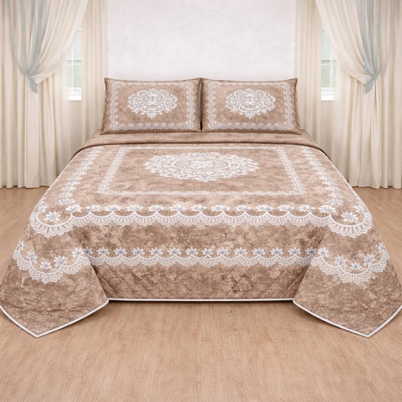 🛏️ Design Elegante - Trapuntino matrimoniale con raffinata stampa digitale effetto pizzo che trasforma la camera da letto in un ambiente romantico e sofisticato, perfetto per ogni stagione