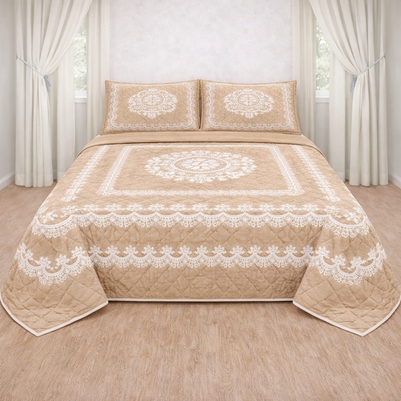🛏️ Design Elegante - Trapuntino matrimoniale con raffinata stampa digitale effetto pizzo che trasforma la camera da letto in un ambiente romantico e sofisticato, perfetto per ogni stagione