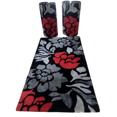 Rinnova la tua camera da letto con questo elegante tris di tappeti dal design floreale rosso e nero. L'effetto Lurex dona luminosità e raffinatezza, mentre il polipropilene garantisce morbidezza e resistenza nel tempo. Il set completo include un tappeto 80x150 cm e due scendiletto 60x110 cm per arredare con stile l'intera zona notte.